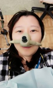笑気のマスクをつけて先生が来るのを待ちます。
