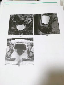 膀胱の腫瘍のMRI、CTを見て何かわからんと。