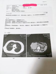 あと、南医師からCT見たら肺に影があるから、腫瘍内科に行けと。